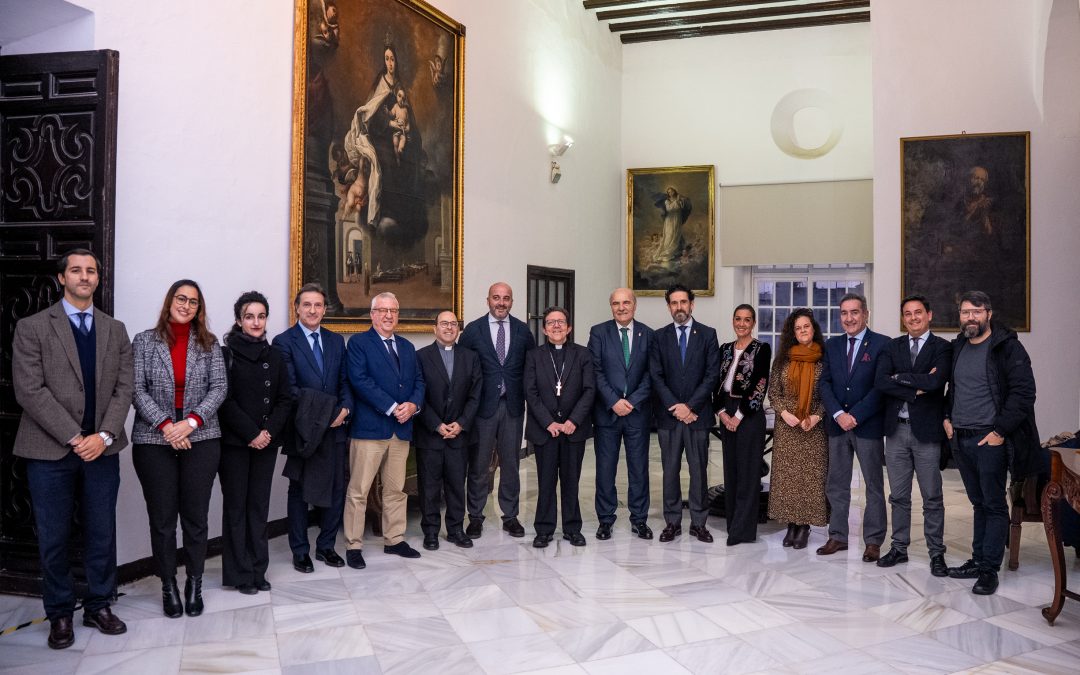 Don Ramón Valdivida compartió con Pablo Manuel Durio un encuentro en la sede del Obispado de Cádiz acompañado por el Consejo de Hermandades