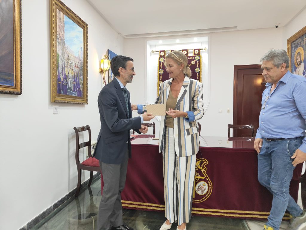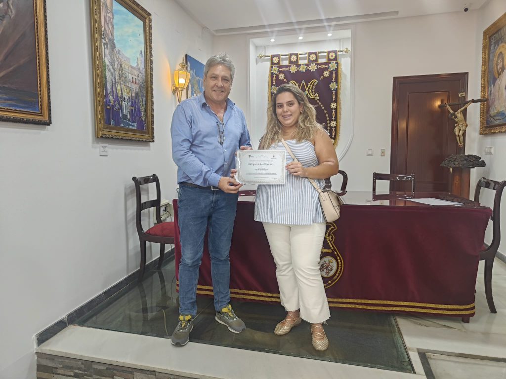 El hermano mayor de la cofradía de la Soledad y Santo Entierro, Fernando Díaz, ha recogido el segundo premio de altares. La corporación participó en el exorno de la carrera del Corpus en la plaza de Candelaria, en la confluencia con la calle Santo Cristo. El premio está valorado en una tarjeta de El Corte Inglés por valor de 250 euros y un diploma.