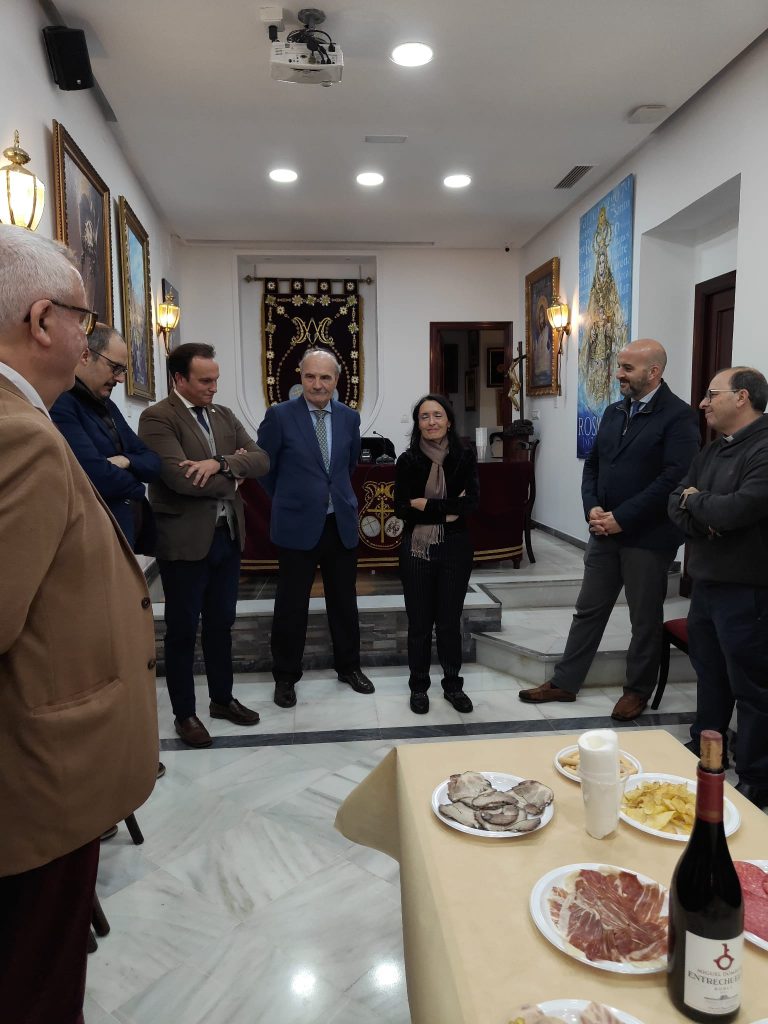 El Consejo de Hermandades ha celebrado el primer encuentro de pregoneros y cartelistas de la Semana Santa y las Glorias. El acto se ha celebrado en la sede de la institución y ha estado presidido por Juan Carlos Jurado, junto a la Permanente y el director espiritual del Consejo, el sacerdote marianista Rafael Iglesias. Pablo Manuel Durio e Isabel Sola, como vocero y autora del cartel de la Semana Santa de 2026, y Jesús Manuel Montaño y Antonio Álvarez del Pino, como pregonero y cartelista de las Glorias 2026, han sido los protagonistas de este acto de convivencia.