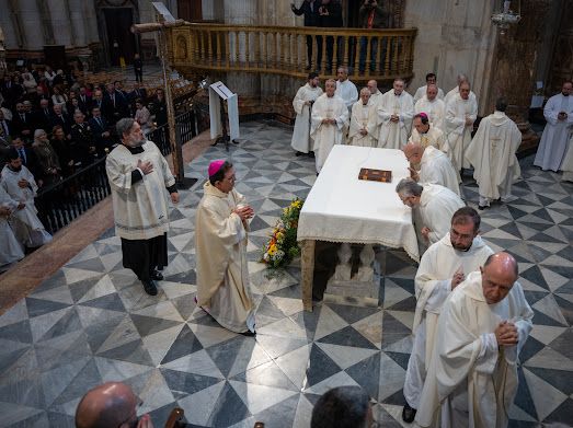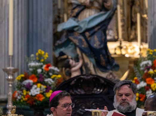 El Consejo de Hermandades y Cofradías de Cádiz, representado por su presidente, Juan Carlos Jurado, ha asistido a la eucaristía de bienvenida presidida por nuestro nuevo Administrador Apóstolico, don Ramón Darío Valvidia. Una misa celebrada en la Catedral de Cádiz. De esta forma el Consejo se suma a la alegría de la llegada de monseñor Valdivia a la Diócesis de Cádiz y Ceuta y se pone a su disposición para trabajar conjuntamente por nuestra Iglesia Diocesana.