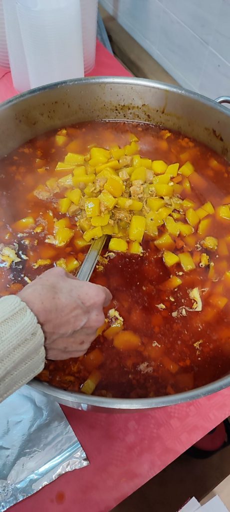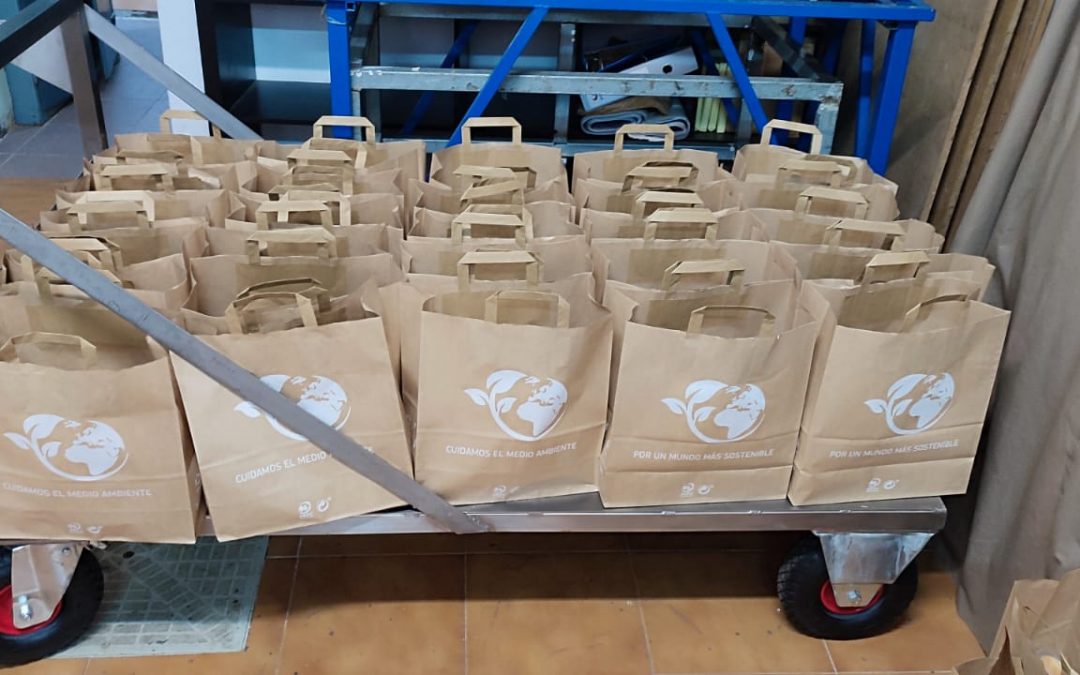 Se ha repartido un total de 50 bolsas de alimentos. El menú de dicha comida, ha sido realizado por la Bolsa de Caridad de la Cofradía de Humildad y Paciencia, como viene siendo habitual.